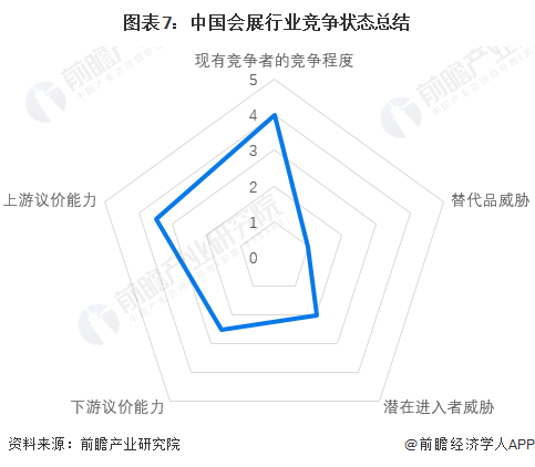 从波特五力模型的角度分析,目前我国会展行业的竞争程度较大,但由于暂时并不存在替代品,因此替代品的威胁相对较弱。此外,由于会展的举办对于办展方的号召力存在一定的要求,对于行业整体来说相当于存在一定的隐性壁垒,因此行业整体的潜在进入者威胁较小。