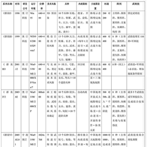 表1. 1998-2021年《三国群英传》系列各重要参数一览表[1]。
