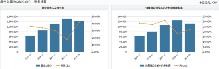 《快消品》了解到,晨光文具在2021年第三季度的营业收入为44.65亿元,同比增长18.25%,相比去年前两季度增速明显放缓;同期归母净利润几乎没有增长,在第三季度仅取得了4.51亿元,同比微增0.57%。不仅如此,晨光文具去年第三季度单季的传统业务的增长也几乎停滞,收入仅增长1%。