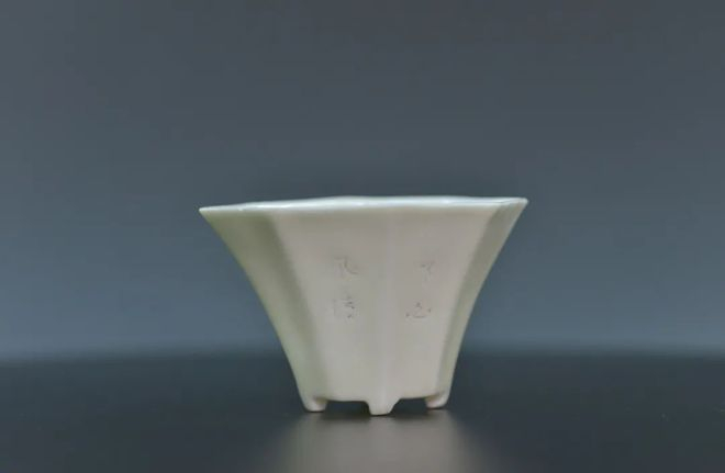 德化窑白釉花瓣口划仙鹤纹三足杯