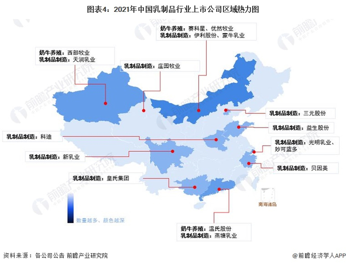 从目前乳制品行业的上市公司业务布局来看,伊利股份、蒙牛乳业、光明乳业等企业业务布局较广,业务布局覆盖了全国各个地区。