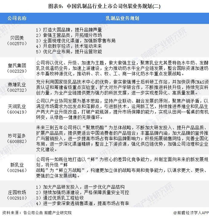 “十四五”期间,农业农村部将加快奶业现代化建设,在奶业产业链建设、乳制品质量监管、乳制品品类发展方向和品牌建设等方面提出了要求。据此,乳制品行业企业的上市公司也明确了其乳制品业务的发展布局: