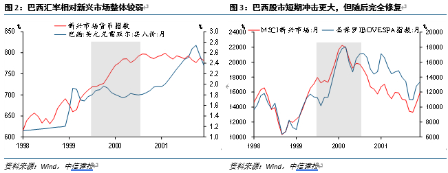 1999年美国加息周期:巴西放松汇率限制,日本延续低利率环境。相对其他新兴市场,巴西货币表现更弱,但股市在短期冲击后较快修复。