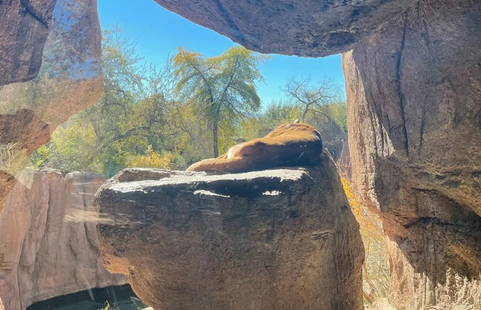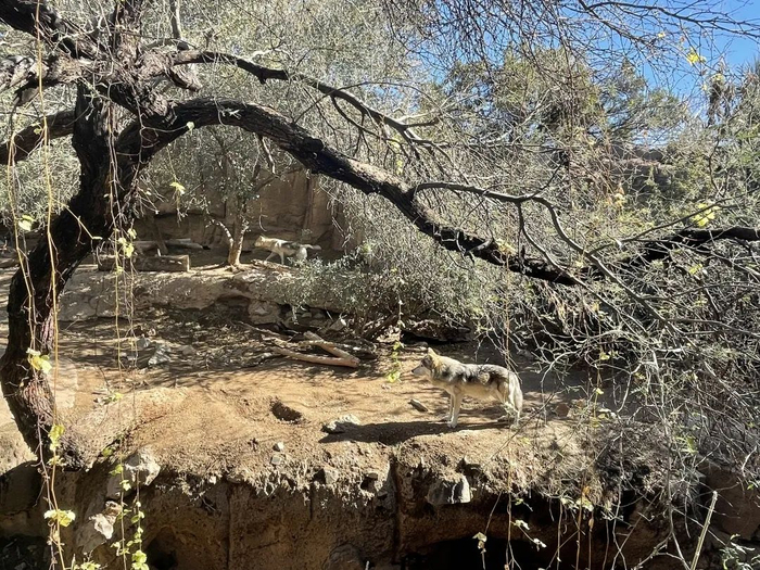 而需要圈养的动物,也是本地的物种,并用本土的植物以及地形地貌特征,设置了充分的丰容。虽然动物不多,只有美洲狮、墨西哥灰狼、灰狐、沙漠大角羊、北美短尾猫等等。它们并非“珍稀”的物种,但配合本地特色的生态环境讲解,还是相当有收获的。
