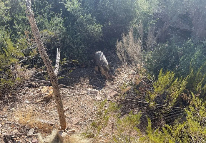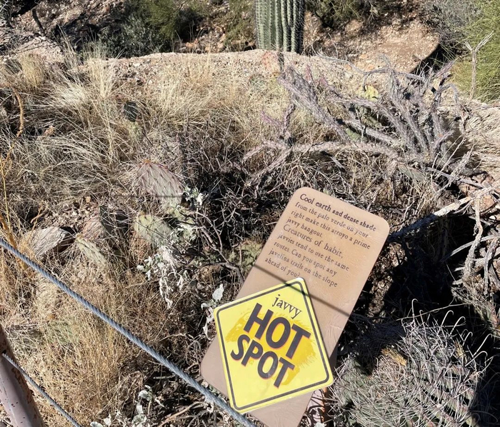 而最大的特色,是在这个类似于野外的沙漠小径中,放养着一些沙漠里常见的小动物——郊狼(coyote)、野猪(javelina)以及一些蜥蜴。这些动物完全在野外的环境中生存,只和小径隔了一层细细的网(更像是把小径本身也就是我们围起来,而不是动物)。