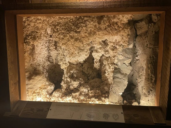 而地质学的方面,则是用一个栩栩如生的地洞展馆,展现了钟乳石洞、晶洞、嵌有化石的页岩等地质景观,配上当地挖出的各种矿物。