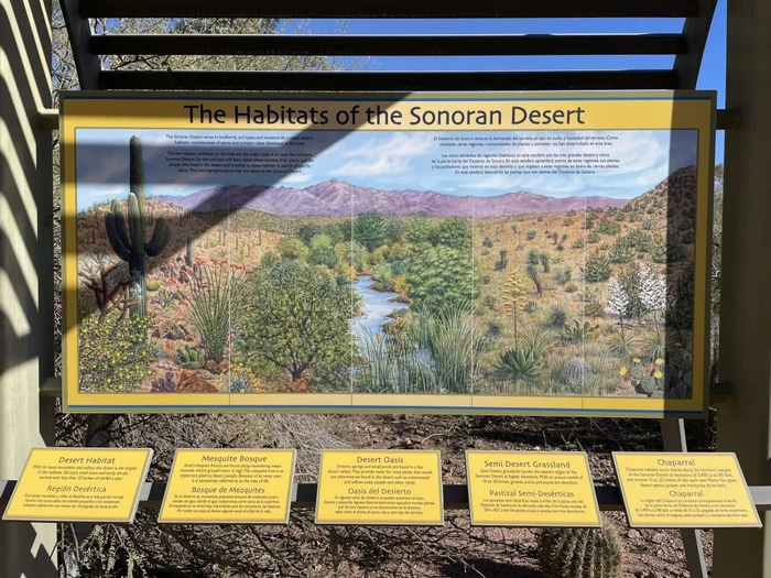 无独有偶,索诺兰沙漠博物馆,也有这样的设置。在半室外的展板上,博物馆详细地介绍了索诺兰沙漠的地质地理——在参观“真·沙漠”之前驻足学习,收获会更丰富。