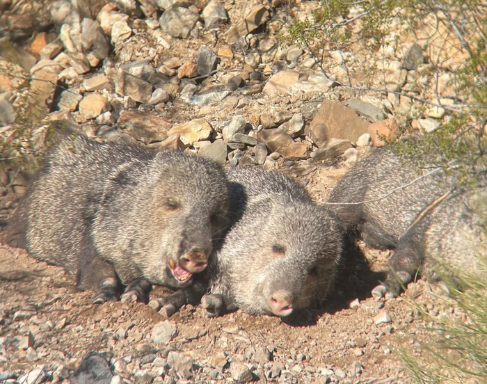 日历娘:美洲大陆上被称为“javelina”野猪属于西猯科(Tayassuidae),而我国本土的野猪属于猪科(Suidae)。与猪科的野猪相比,美洲野猪体型更小,头部也更短,并且獠牙向下,而非野猪般向上弯曲。