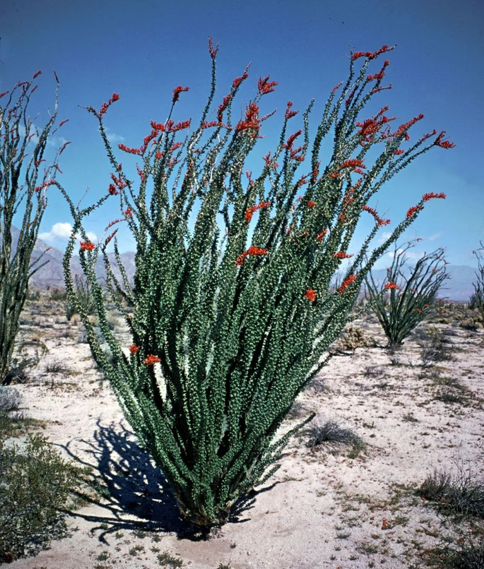 在旱季长得像枯枝的墨西哥刺木(ocotillo),开出花来可是鲜艳得很呢!