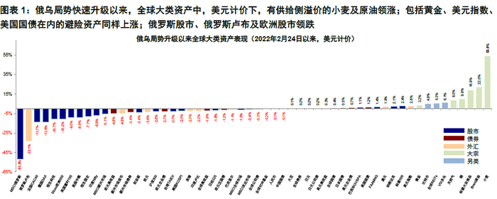 ►资产表现:大宗>债>股,俄罗斯股汇延续跌势,供给侧溢价推动资源品大涨