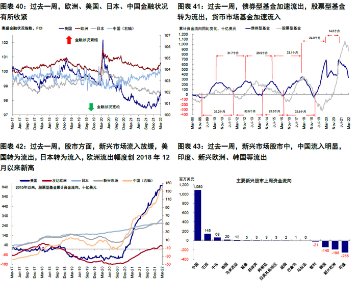 过去一周,债券基金加速流出,股票型基金转为流出,货币市场基金加速流入。分市场看,股市方面,新兴市场流入放缓,美国转为流出,日本转为流入,欧洲流出幅度创2018年12月底以来新高。