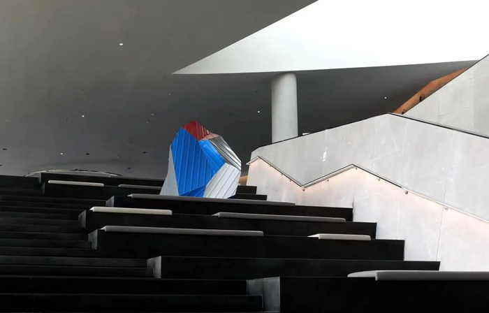 走进成都市天府美术馆,就会发现天府馆内空间墙面都采用了竹皮材料,既有着四川地域特色,同时空间灯光又借用竹棚透光的效果,产生了云状点光源。而在成都市当代艺术馆一层巨大的展厅里,来自国内外知名艺术家的代表性作品尽皆展出。“多态共生”板块汇聚了12个国家39位艺术家的最新创作,川渝本地的艺术家何多苓、周春芽、张晓刚等与安尼施·卡普尔(Anish Kapoor)、奥拉维尔·埃利亚松(Olafur Eliasson)、丹尼尔·布伦(Daniel Buren)的作品并置,共同探讨哲学、生命、媒介、信息、时空等多元话题。