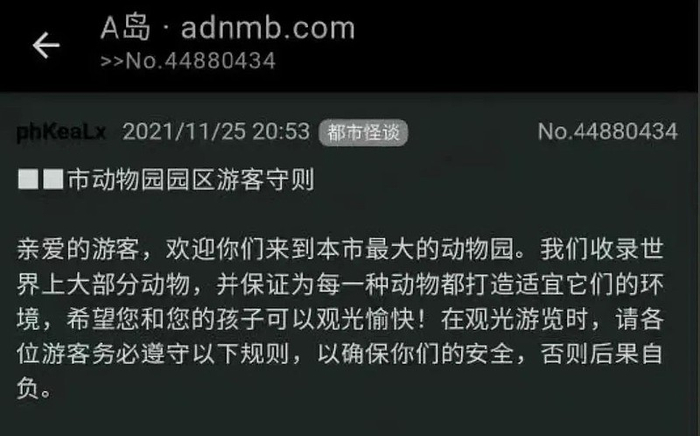 得益于匿名的发言机制,A岛也成为了很多创作者钟爱的平台。不论是曾经出圈的“动物园怪谈”系列还是“怪谈版”和“小说版”,作者“隐身”于文字背后,使得作品质量成为了评价的唯一标准,也给了每个创作者被阅读和赞美的可能。读者对于自己喜爱作品的解读、续写和二创,也让这些作品不断丰满。