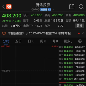 700港元跌至400港元,7万亿港元市值跌至4万亿港元,腾讯只用了半年时间,4日腾讯再度大跌,考验400港元关口支撑力度。
