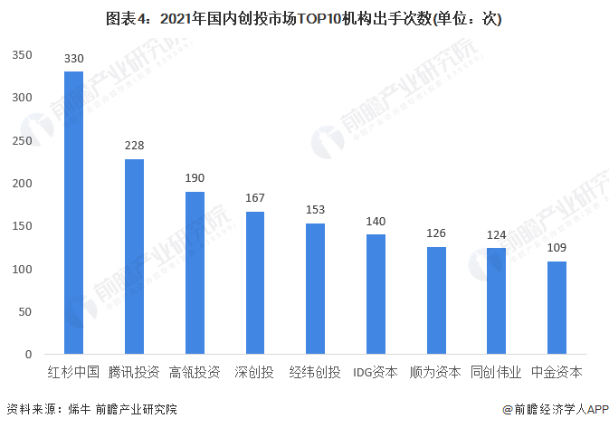 具体看排名靠前的TOP机构有红杉中国、腾讯投资、高瓴投资、深创投和经纬资本等,其中红杉资本和腾讯投资2021年国内创投投资次数均超过200次,是我国最大的两大投资机构。