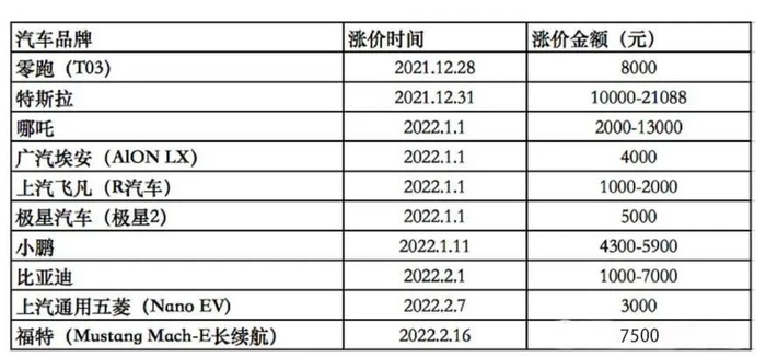 据“证券时报”统计,截至2月26日涨价的新能源车企