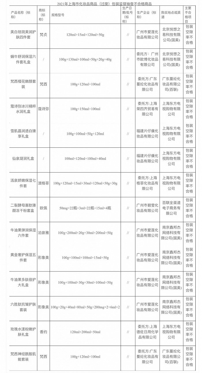 近期,上海市市场监督管理局对本市生产、销售的化妆品进行了商品(过度)包装监督抽查。
