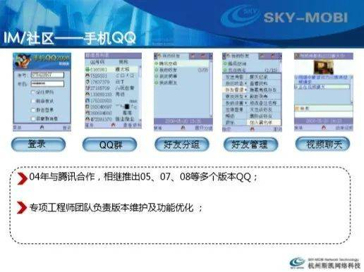 第二年,斯凯和冒泡平台崭露头角,正式推出了功能机平台的手机 QQ,这是首款基于功能机平台的国产手机软件。2004 年开始,斯凯就与腾讯合作,打造了多个版本的手机 QQ。当时的功能机版 QQ,基本都是由斯凯完成开发。