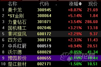 3月7日,培育钻石概念大涨,个股方面,曼卡龙(300945)盘中一度触板,截至发稿,涨幅超8%,*ST金刚(300064)涨超5%,力量钻石(301071)、国机精工(002046)涨超3%,四方达(300179)等个股纷纷跟涨。