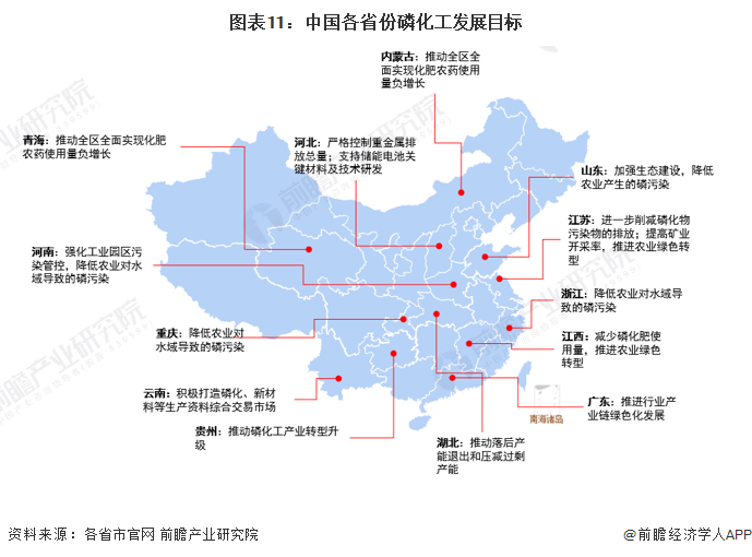 根据我国主要省份提出的磷化工行业的发展规划或目标来看,其中,绝大部分的都主要是围绕减少磷化污染物排放或是去除过剩产能为主,除此之外,有的省份还提出支持磷酸铁锂储能电池的技术研发为行业发展目标。