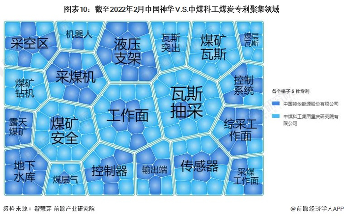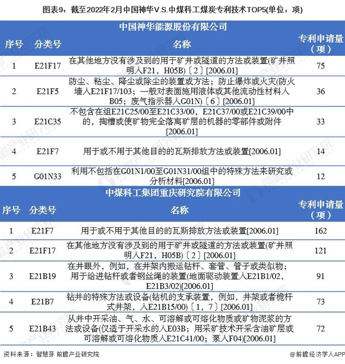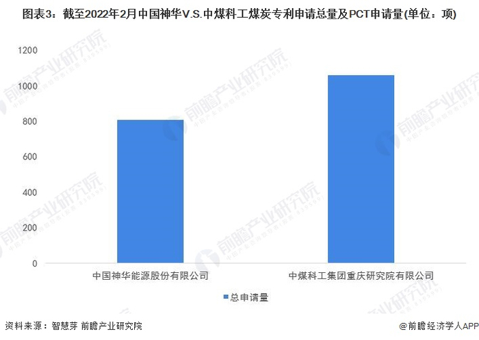 在煤炭专利申请量方面,中煤科工略胜一筹。具体来看,截至2022年2月,中国神华和中煤科工的煤炭专利总申请量分别为810项和1060项,中煤科工以250项的优势取胜。