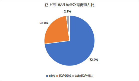 在此背景下,《港股18A生物科技公司发行投资活报告》(以下简称18A活报告)应时而生,聚焦港股18A规则下的生物科技公司,根据公司主要产品管线,对18A规则下的生物科技企业做了系统梳理,得出18A生物企业的全景图。截至2021年12月31日,71家企业分别处于制药、医疗器械、前沿医疗技术三个赛道,其中,已摘“—B”标志的企业有4家,上市未盈利的有44家,表递未上市的有23家。