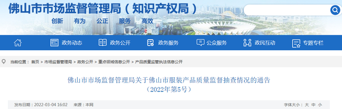 中国质量新闻网讯 近日,广东省佛山市市场监督管理局发布关于佛山市服装产品质量监督抽查情况的通告(2022年第5号)。