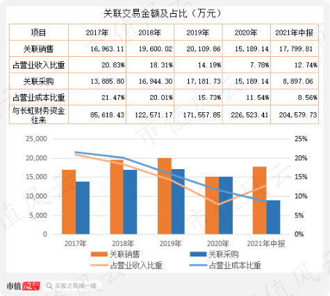 此外,长虹能源与关联方长虹财务有着非常频繁的资金往来,2017年为8.56亿元,2020年增至22.7亿元。