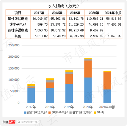 其中,“碱电”主要以OEM(代工)生产销售,是劲量、金霸王、东芝、三菱等品牌的供应商之一;“锂电”主要以直供方式销售给下游电动工具等制造商,由并购江苏三杰新能源公司而来,成为增长最快的业务。