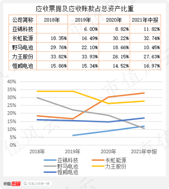从应收票据及应收账款占总资产的比重看,长虹能源也是攀升最快的,与野马电池逐年下降形成鲜明对比。