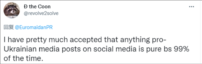“我几乎已经接受了这样一个事实:任何亲乌媒体在社交媒体上发布的内容里,有99%都是在胡说八道。”