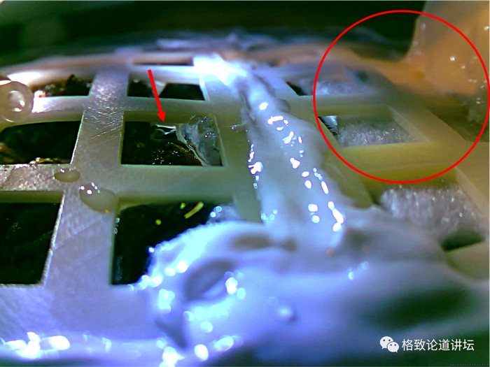 半个小时后,总体给我们指令说可以放水了,我们就把18克水一次性放完。大家可以看到,板子上像水珠一样的东西就是我们研制的溶剂,它只有在月球上才能溶化。