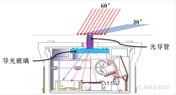捕捉太阳自然光进入罐子。万物生长靠太阳,月球上一个白昼是14×24小时,所以阳光非常充足。但是我们的罐子很小,如果进入太多阳光的话,温度就难以控制。经过计算,如果既要控制温度,又能够满足光合作用的话,需要8毫米直径的阳光进入量。于是我们留了一点余地,用10毫米直径的光导管把阳光引进罐子内。