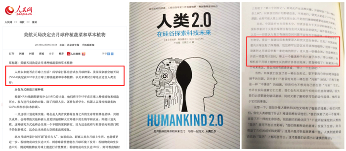 国际上有很多团队想去月球做一次生命实验。在2013年,NASA就宣布计划于2015年到月球上种菜并创造历史。在2017年出版的《人类2.0》一书中,科学记者皮埃罗∙斯加鲁菲采访了全球15位顶级科学家,其中太空生物采访了NASA的首席科学家麦克。这位科学家认为,他的理想就是带部相机、带个罐子、带些水、带些种子去月球上做实验,再把照片传下来,他说这将“简直棒极了”。