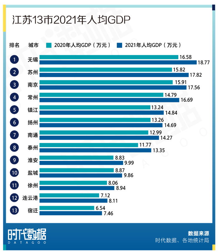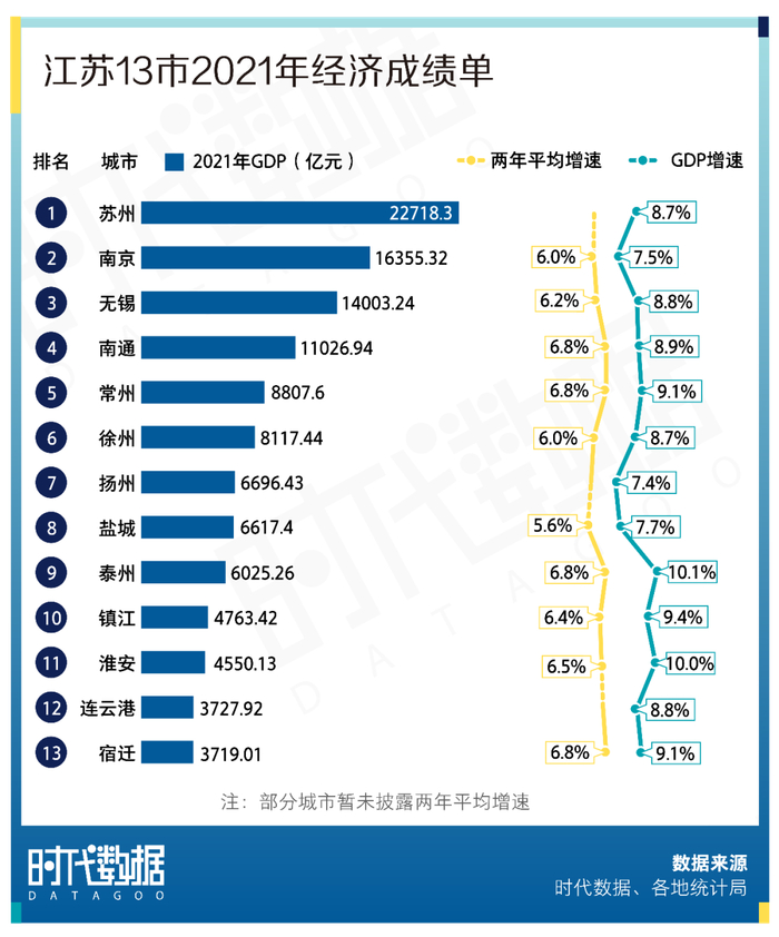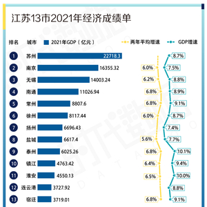 江苏13市2021年经济成绩单:苏州GDP全省第一,泰州增速亮眼