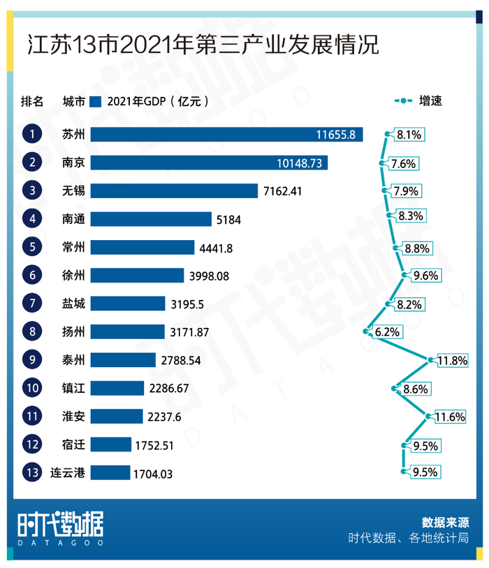 苏州、南京第三产业增加值超1万亿元,稳居前二