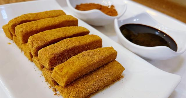 一千多年后,驴打滚儿的发源地成了明十三陵的北大门,祭祀皇陵的人不仅享用这种美食,还将驴打滚儿带入了京城。有趣的是,从王公贵族到黎民百姓,无不对驴打滚儿青睐有加。于是,这种来自京北边关的食物摇身一变,成了名满京城的风味小吃。当然,配料和制作工艺也改变了不少,比如,黄米面换成了糯米粉,还加入了红糖。一位在皇城根儿下长大的朋友告诉我,他小的时候,经常有小贩推着小车走街串巷叫卖驴打滚儿,过年的美食不少,但冰冰凉凉的驴打滚儿是他最爱吃的。