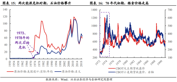 这一时期中,第一次石油危机和粮食危机所形成的成本推动型高通胀是分子端基本面衰退和分母端流动性收紧的“元凶”。