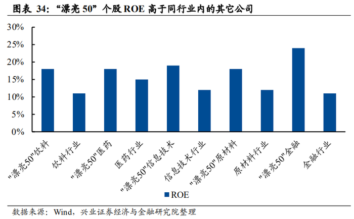 初期,基本面为锚,催化“漂亮50”上涨,其中,行业集中度和ROE的提升是核心因素。1)“漂亮50”所处行业的集中度均出现了上涨,而“漂亮50”这些龙头股将充分受益,例如60年代以来,饮料行业内的企业数量锐减6成以上,前20家企业市场份额提升近20%。2)“漂亮50”个股的盈利能力强于同行业其他企业,例如,“漂亮50”中赢料行业个股的ROE均值为18%,高出行业平均7pct,在流动性宽松和风险偏好提升背景下,高ROE使龙头股迎来价值重估。