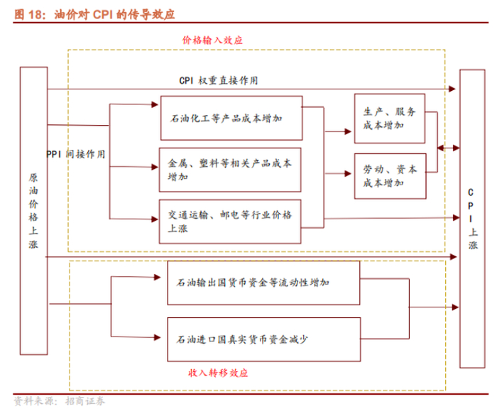 一方面,由于原油在CPI中占有重要权重,国际油价走高,影响国内油价及相关石油化工产品成本增加,直接作用于一篮子商品。