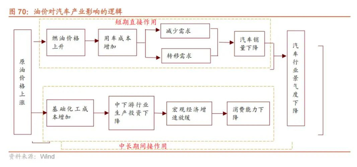 汽车产业链而言,总量上,油价的高企会从整体上抑制汽车的需求。三次石油危机期间,全球汽车销量均有较大幅度下滑。、