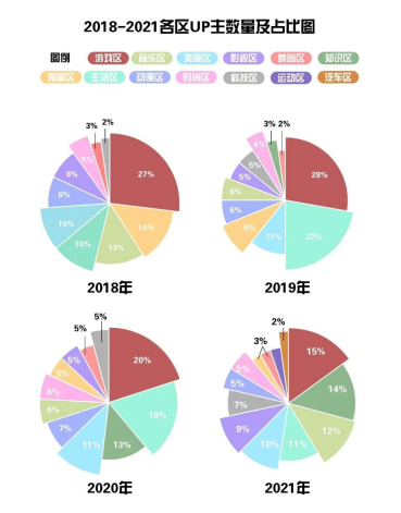 之所以出现这样的局面,是因为B站近几年主导的破圈战略本来就是致力于吸引不同圈层的人群入驻,有意淡化二次元标签,这一点无论是从B站动画番剧区热度不断下滑,还是从百大UP主比例变得越来越平均都可见一斑。甚至在2019年到2020年期间,B站有意压缩游戏收入的占比,试图摆脱对B站长久以来对游戏业务的重度依赖,以大众化的内容,拓宽更多的用户群体,进而开发更多的潜在商业变现能力。