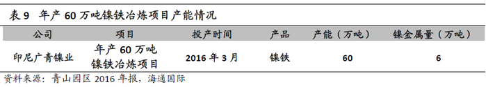 公司的年产15万吨镍铁项目于2018年2月10日开工建设,并于2019年3月正式投产并达产。