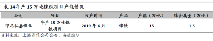 印尼仁嘉镍业于2018年8月,由Nickel Mines Limited(持股80%)与上海鼎信(持股20%)合资成立。公司建设有年产15万吨镍铁项目,于2019年6月正式投产并达产。