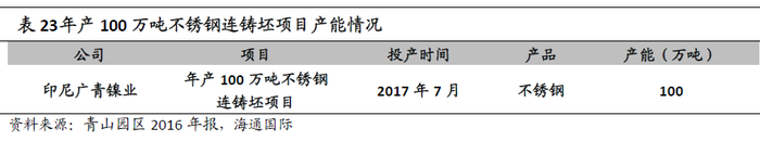 印尼青山不锈钢有限公司除了年产60万吨镍铁项目外,还建设有年产100万吨不锈钢项目。该项目采用RKEF+AOD一体化工艺,于2015年7月开工建设,2016年6月实现投产。