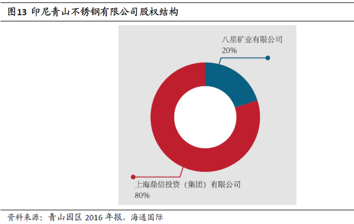 印尼青山钢铁有限公司于2016年12月,由上海鼎信投资(集团)有限公司(持股80%)与印尼八星矿业有限公司在印尼合资设立,投资建设有年产50万吨镍铁项目(TSI项目)。