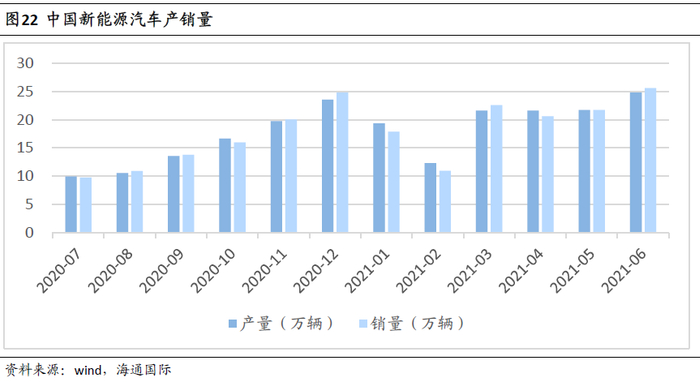 新能源汽车是镍下游未来主要需求。根据Wind统计数据,我国新能源汽车的产销量每月基本持平。2021年3月以来,产销量即突破每月20万辆的规模,并保持持续增长态势。鉴于新能源汽车产业正在高速增长,青山集团依托于丰富的上游资源优势,于2017年开始布局新能源行业,并从上游镍矿开采和下游新能源产品制造两方面,力图打造新能源全产业链。