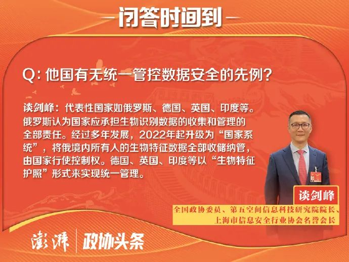 谈剑峰介绍,目前包括俄罗斯、德国、英国、印度等在内的一些国家,已经将生物特征数据进行统一管理。俄罗斯认为国家应承担生物识别数据的收集和管理的全部责任。经过多年发展,2022年起升级为“国家系统”,将俄境内所有人的生物特征数据全部收储纳管,由国家行使控制权。德国、英国、印度等则以“生物特征护照”形式来实现统一管理。