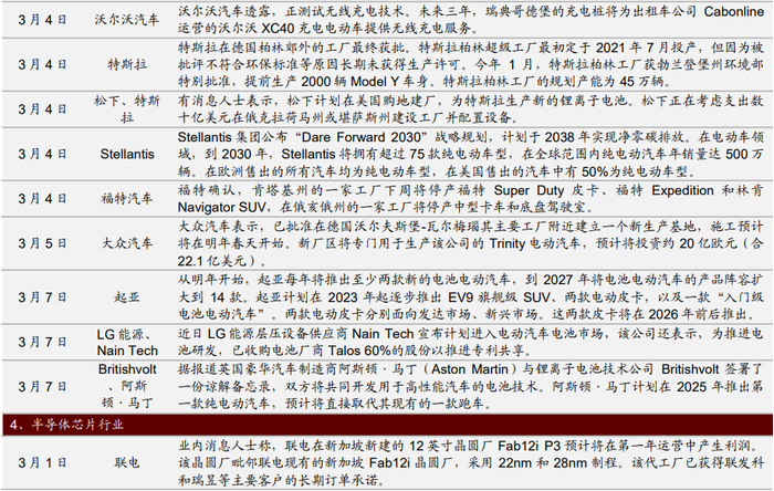 【重要资讯】索尼、本田:索尼和本田表示将合作开发和销售纯电动汽车。他们将在今年成立一家合资企业,计划在2025年开始销售第一款电动车。皮博迪:美国最大的煤炭供应商皮博迪能源公司与另外两家公司共同组建了一家可再生能源开发合资企业R3 Renewables LLC。通用、谷歌:加州公共事业委员会(CPUC)向通用汽车和Alphabet Inc的自动驾驶部门发放了许可证,允许他们在安全驾驶员在场的情况下使用自动驾驶汽车提供客运服务。