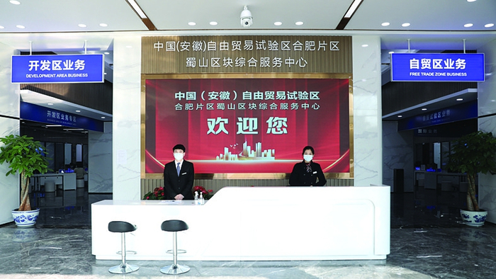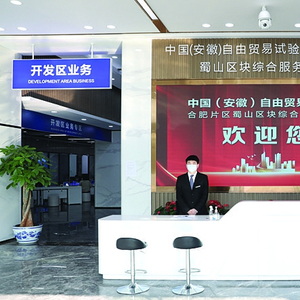 建设一个服务中心蜀山区已建设安徽自贸试验区合肥片区蜀山区块综合服务中心,筹备设立自贸试验区行政审批中心,实现就近“一口申报”“全网通办”。